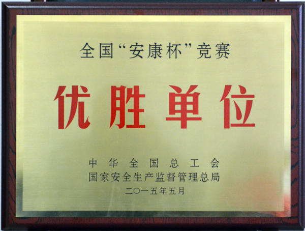 公司在2014年度“安康杯”安全生產競賽中,被中華全國總工會、國家安全生產監督管理總局評為優勝單位。這是我公司連續第十一年獲此殊榮。