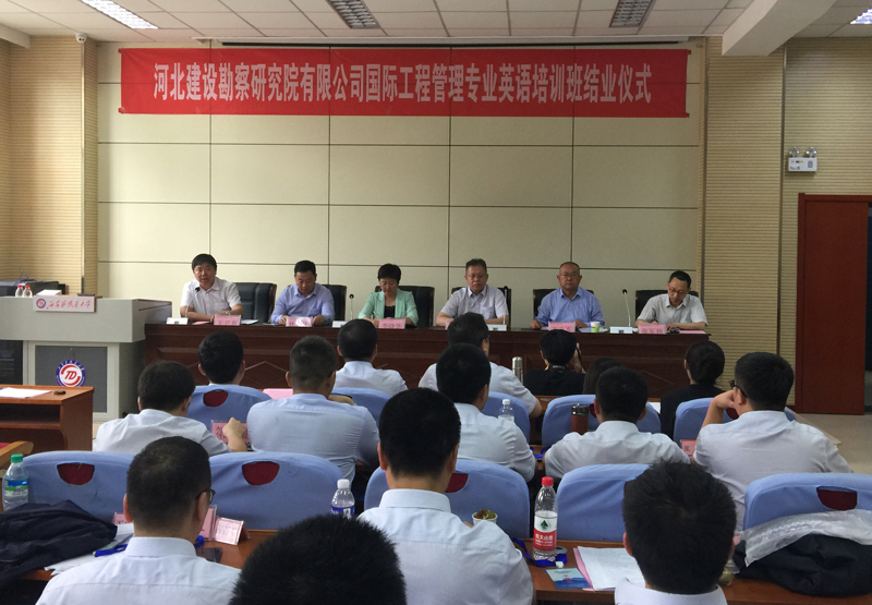 為適應公司“走出去”發展戰略,加強人才隊伍建設,公司委托石家莊鐵道大學舉辦了第二屆國際工程管理專業英語培訓班,歷時28天,2019年5月13日,圓滿完成了各項培訓課程,在石家莊鐵道大學第九實驗室舉行了結業典禮。出席結業典禮的有:公司總經理李華偉、石家莊鐵道大學黨委副書記李曉華、公司人力資源部、石家莊鐵道大學繼續教育學院和外語系的有關領導、老師,全體學員。