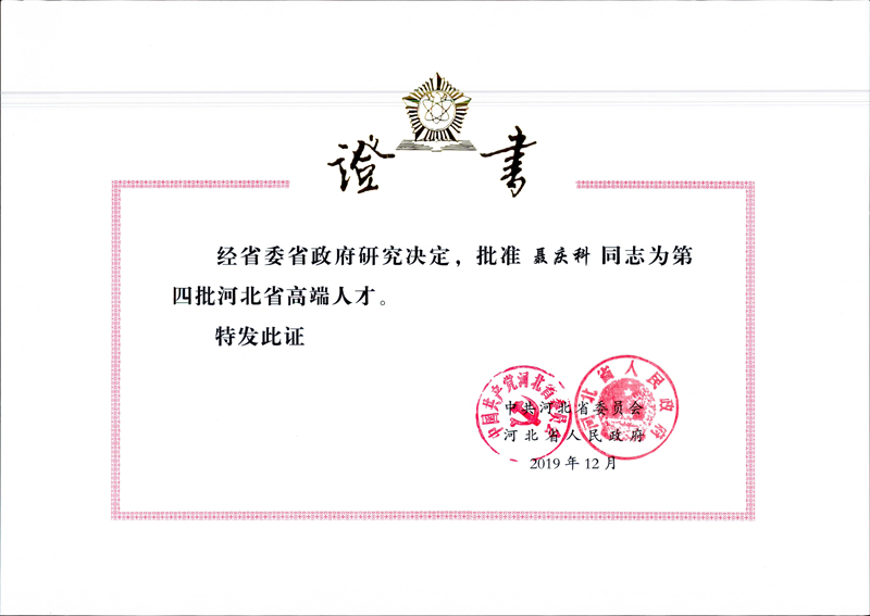 經公司申報、中共石家莊市委組織部推薦,中共河北省委、省政府批準,公司總工程師聶慶科列入河北省高端人才第四批支持計劃名單,支持期限為2019年12月至2024年11月,每年將獲得30萬元的專項資金支持。