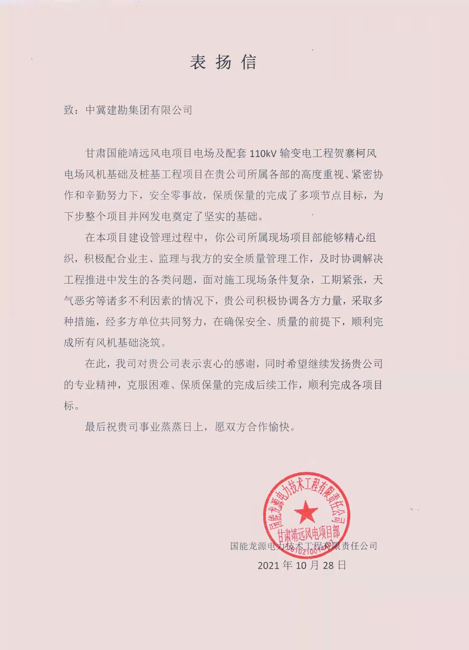 近日,公司連續收到業主及總包發來的表揚信及榮譽稱號,對我公司項目的質量及安全管控等方面的工作表示了一致認可。