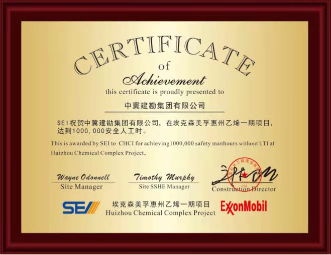 廣東惠州??松梨诨葜菀蚁┮黄陧椖繕痘こ蹋瑯s獲??松梨冢ɑ葜荩┗び邢薰炯爸袊こ探ㄔO有限公司惠州項目部“達到1000000安全人工時”優秀團隊獎,耿蕩榮獲“安全先進個人獎”。