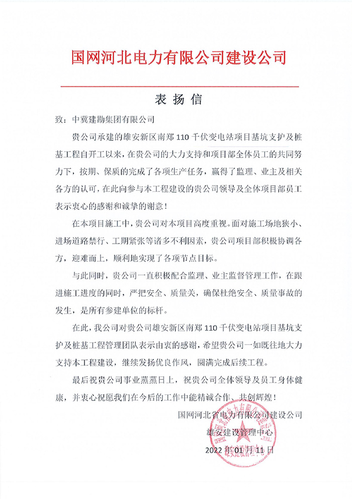 近期,公司連續收到業主及總包方發來的表揚信及榮譽稱號,對我公司所承擔的多個工程項目的生產組織、質量管控、安全文明施工等給予了充分肯定。