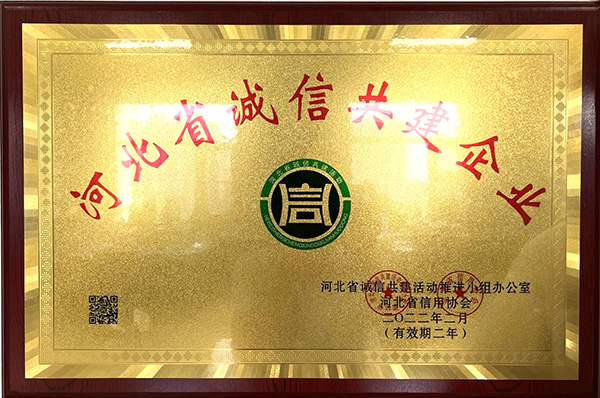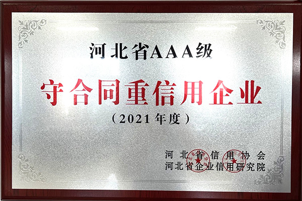 根據(jù)河北省信用辦、河北省信用協(xié)會(huì)等七部門印發(fā)的《關(guān)于開(kāi)展“推進(jìn)誠(chéng)信建設(shè)共建信用河北”的活動(dòng)方案》的通知及《關(guān)于2021年度河北省“守合同重信用”企業(yè)申報(bào)認(rèn)定工作的通知》,我公司被評(píng)為“河北省誠(chéng)信共建企業(yè)”和“河北省AAA級(jí)守合同重信用企業(yè)”。