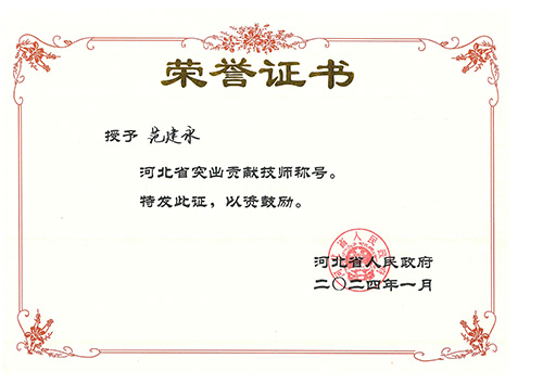 經公司組織申報,河北省工程勘察設計咨詢協會、河北省民政廳推薦,河北省人力資源和社會保障廳組織評審,河北省人民政府決定,公司范建永同志榮獲河北省突出貢獻技師稱號。