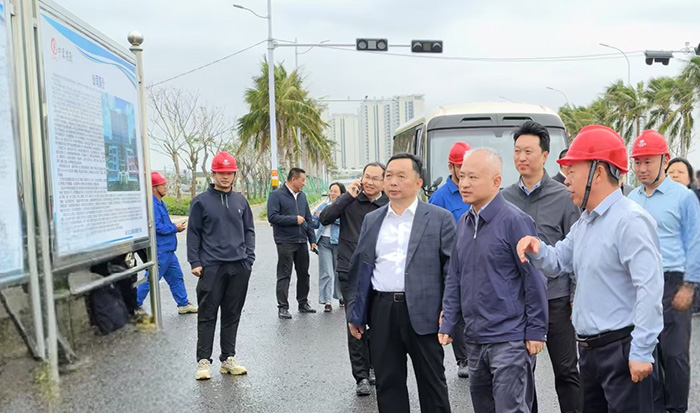 2024年12月12日上午,海口市市委副書記、市長丁暉,常務副市長馮琳,江東新區管理局書記王明夫、局長張笑寒及??谑邢嚓P主管部門領導等一行蒞臨建勘壹號院項目,對項目的進展調研并指導工作。海南房地產公司經理陳家勇及九公司經理劉云峰等相關負責人陪同。