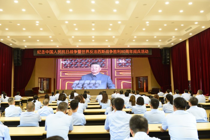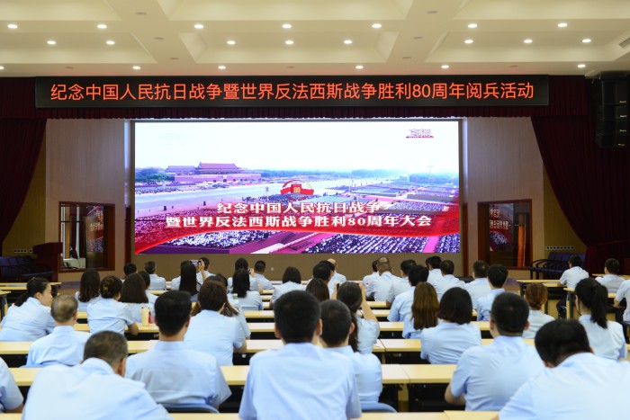 9月3日上午9時,集團公司在石家莊機關(guān)辦公樓五樓會議廳組織近150名職工集中觀看了“紀(jì)念中國人民抗日戰(zhàn)爭暨世界反法西斯戰(zhàn)爭勝利80周年大會”直播盛況。