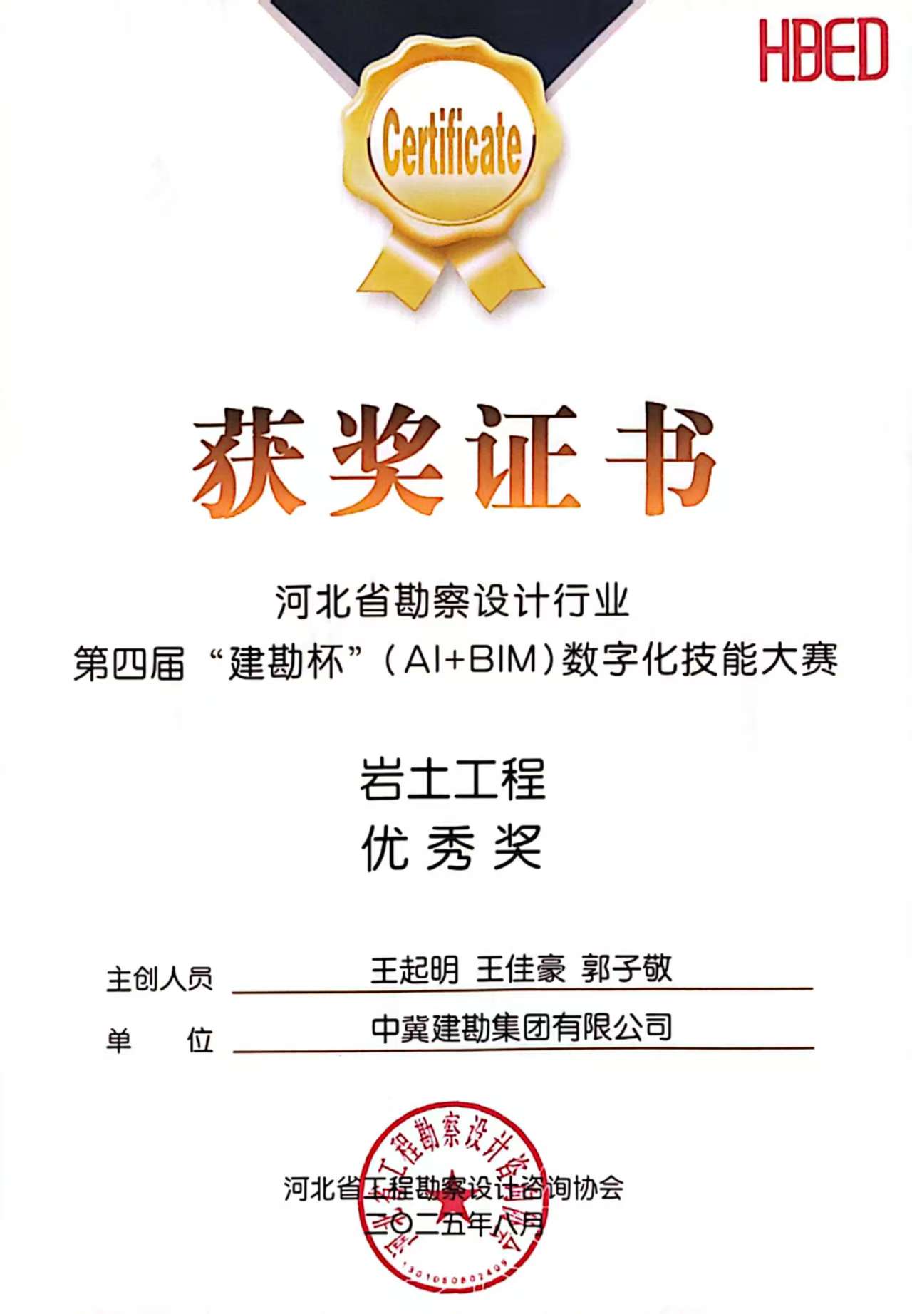 集團公司榮獲第四屆“建勘杯”(AI+BIM)數字化技能大賽兩個獎項